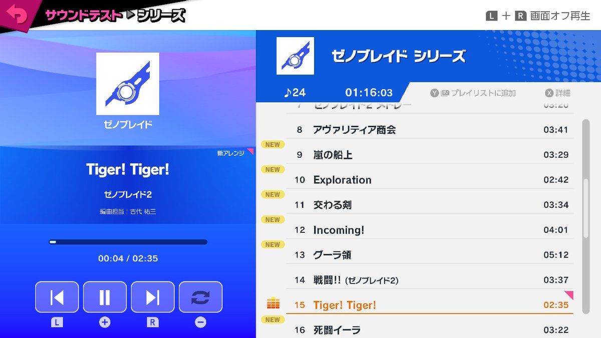 Tiger! Tiger! のアレンジが古代さんで、なんだかナムカプの特典サントラ思い出したよ~。本家トラが8bitなFCなら今回のアレンジはSFCに移植したトラトラ? #モノリスソフト作品音楽語り pic.twitter.com/Jw8bOmZavh