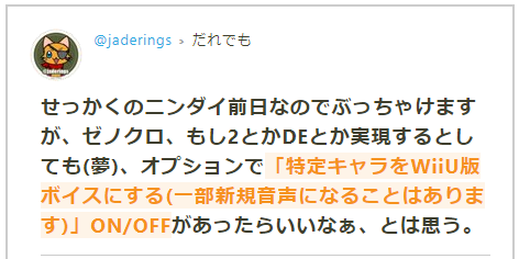 せっかくのニンダイ前日なのでぶっちゃけますが、ゼノクロ、もし2とかDEとか実現するとしても(夢)、オプションで○○○○○○○○○○○○○○○○○○○○○○○○○○○○○○○○○○○○○○○○○○○があったらいいなぁ、とは思う。 fse.tw/eNJ9BSob#all