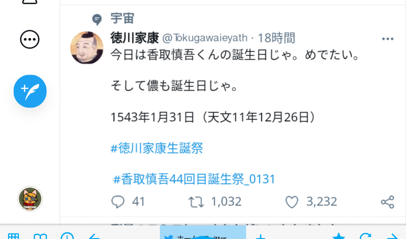 今日は香取慎吾くんの誕生日じゃ。めでたい。