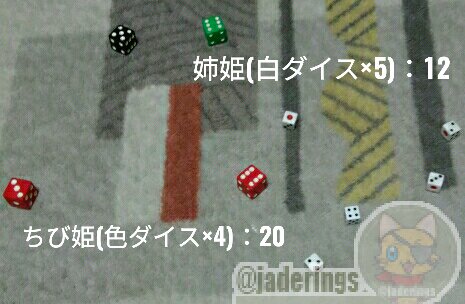 姉姫と一緒にお風呂入りたいちび姫に対し、入りたくないでござる姉姫が「じゃあちび姫4D6vs自分5D6でそっちが勝ったらいいよ」とダイス対決した結果がこれです。御査収下さい。 …固定値は裏切らないんだよ、姉姫や(肩ぽむ) pic.twitter.com/ygMdTRRKDm