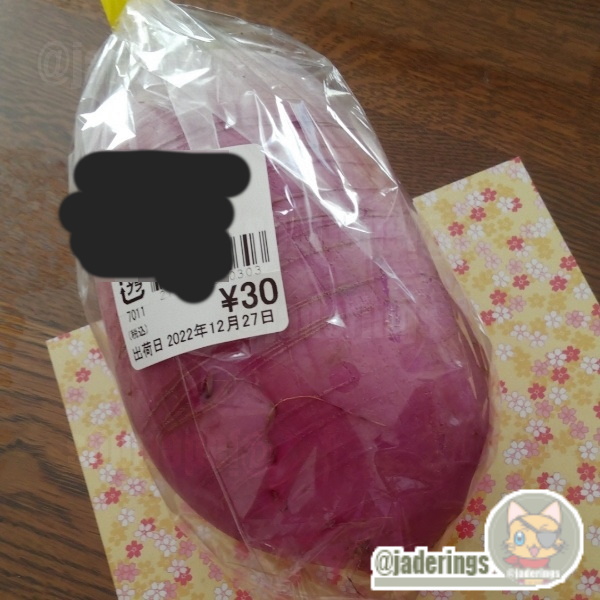 あのツイした後ちょっと遠出して野菜買いに行った農協系のお店でタツ…もといノポポダイコンを確保した事は報告したい(30円)。 紅芯大根いいよね。 #おせち料理 twitter.com/jaderings/stat… pic.twitter.com/qS3Vdnl2F4