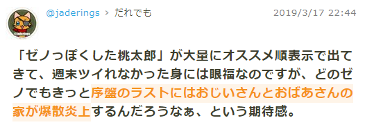 ふせったー畳む前にクッションするね。「ゼノっぽくした桃太郎」が大量にオススメ順表示で出てきて、週末ツイれなかった身には眼福なのですが、どのゼノでもきっと○○○○○○○○○○○○○○○○○○○○○○○○○○するんだろうなぁ、という期待感。 fse.tw/MUeAU#all