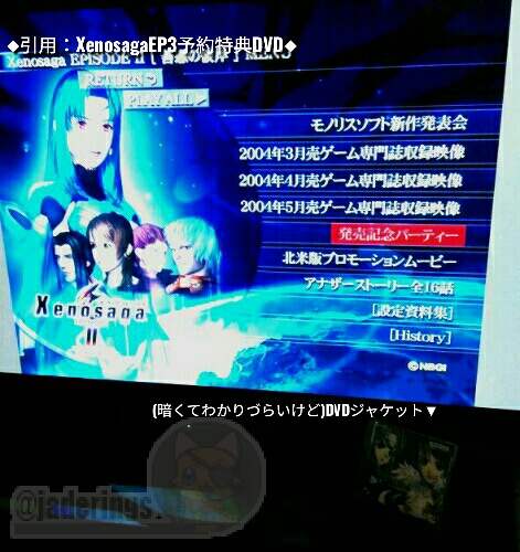 この中、東京ゲームショー等での公開映像や、キャラクターの制作過程絵などはもちろん、制作発表会の会場の映像があったり、販促ムービーやら店舗ポップやらゼノサに関わる宣伝商材がどかっと詰め込まれている、当時のゲーム販促資料の集大成としては一級品としか言いようがないアイテム。