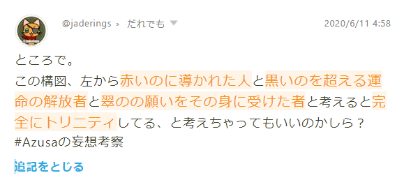 ところで。 この構図、左から○○○○○○○○○と○○○○○○○○○○○○○と○○○○○○○○○○○○○○と考えると○○○○○○○○してる、と考えちゃってもいいのかしら? #Azusaの妄想考察 fse.tw/52tyTSDS#all