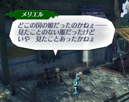 上のスクショはイヤサキ村じゃないんですが、ごめん、PC保管済で場面に合いそうなのがこれしかなかった。イヤサキ村のスクショ撮り直したら差し替えます。どこのシーンだか当てられる方は相当のゼノブレ通です。