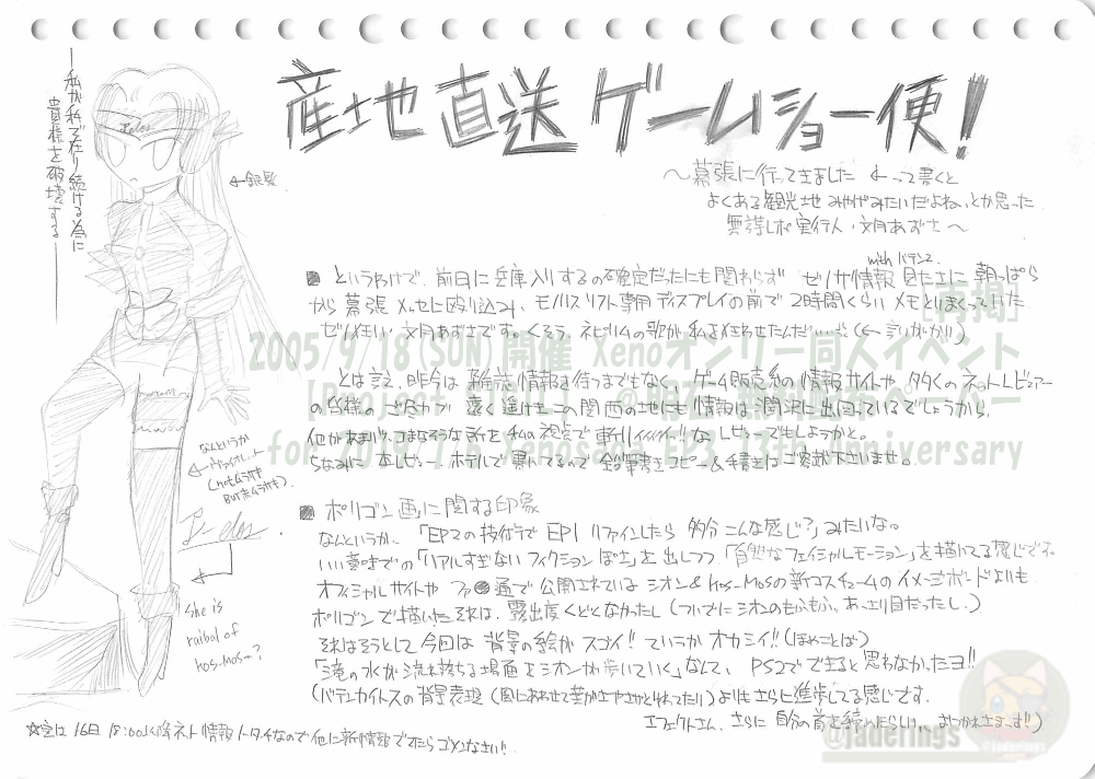 先日部屋を整理していましたところ、昔、ゲームショーで見たゼノサEP3情報を書いたペーパーが発掘されまして。
